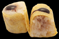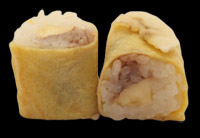 Rouleaux de riz enrobés d’ oeuf , fourrés au chocolat et aux